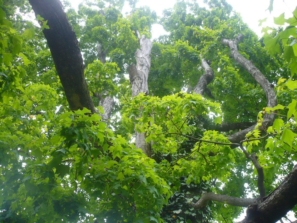 so quickly the blink of an eye it seems you have gone from bare bark to heavy with green canopy leaning to greet me and sensing so pure a presence laden, lush each leaf is love that’s somehow enough heaven and earth merging to meet me in your canopy leaning to greet me